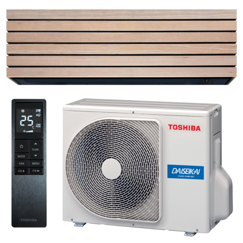 Cena split sady Toshiba Daiseikai 10 Wood zahrnuje venkovní + vnitřní jednotku s bezdrátovým IR ovladačem.