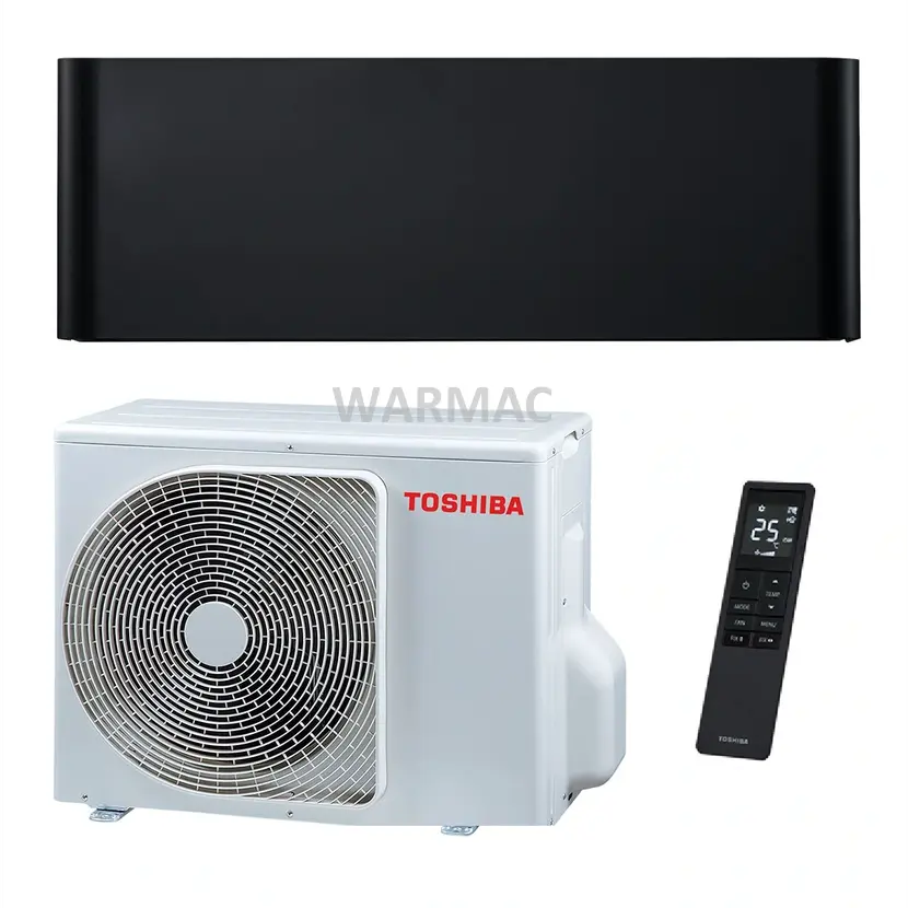 Cena split sady Toshiba Curve - Black zahrnuje venkovní + vnitřní jednotku s bezdrátovým IR ovladačem.