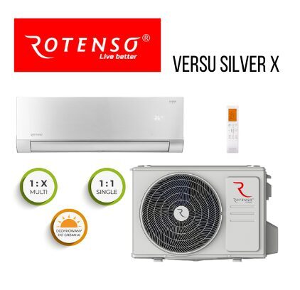 Klimatizácia Rotenso ® Versu Silver je určená pre zákazníkov, ktorí oceňujú moderný dizajn. Strieborný predný panel zvýrazňuje prestíž zariadenia a skvele zapadne do každého interiéru. Luxusný charakter Versu Silver ešte umocňuje jemné podsvietenie – modré v režime chladenia, oranžové pri zahrievaní.