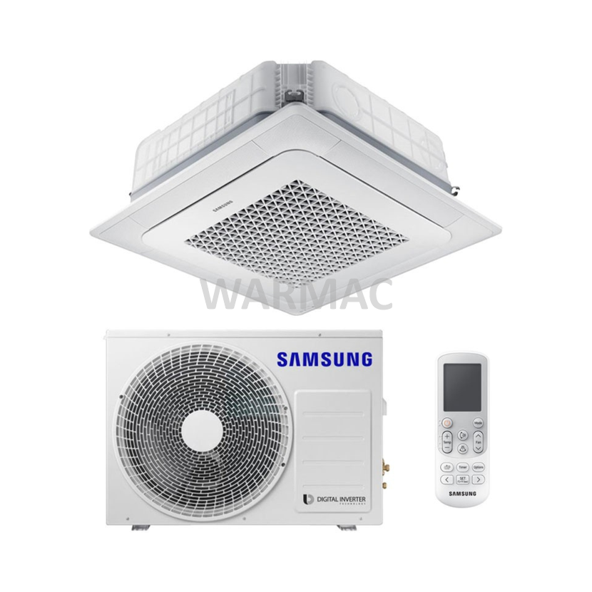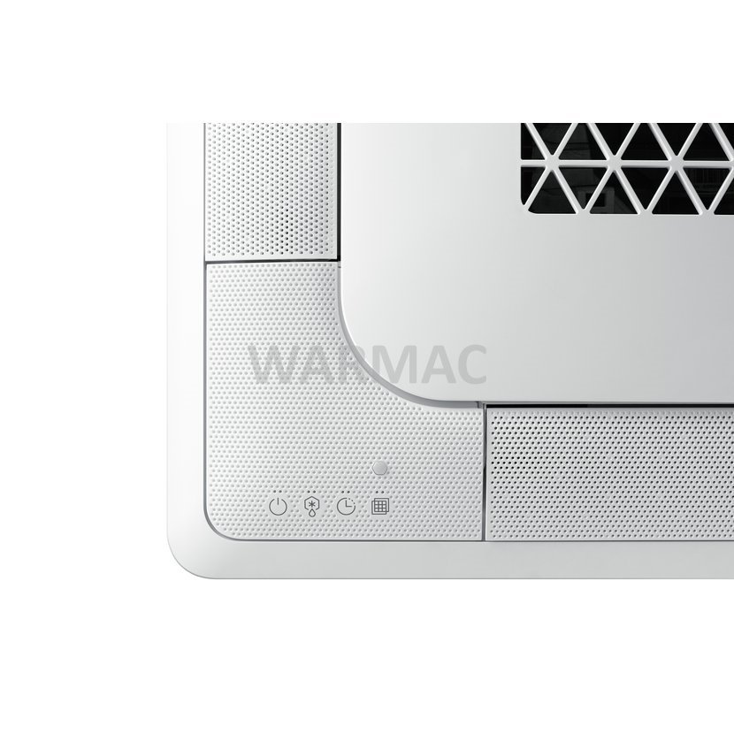 Bezprůvanová SAMSUNG Wind Free™ Mini 4 CESTNÍ KAZETOVÁ jednotka CAC o rozměrech 600 x 600 mm je navržena pro instalaci do stropu. Jednotka rovnoměrně a pomalu fouká vzduch ze stropu na čtyři strany ve dvou stupních „Fast Cooling Mode“ (maximální výkon) a následně bezprůvanový režim pro udržení teploty a je vhodná pro náročný 24 hodinový provoz. Jednotka pracuje v režimu chlazení do -15°C a vytápění do -20°C venkovní teploty.